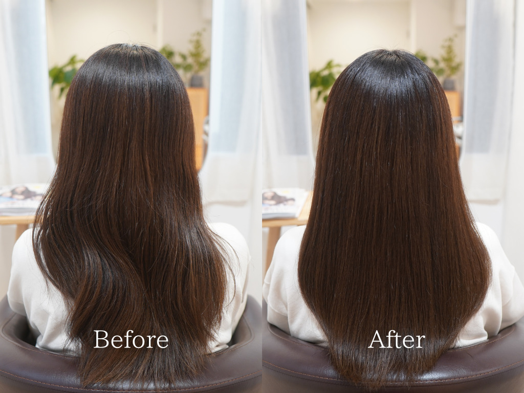 時間を置いて、根本から毛先まで水素トリートメントをしました◎